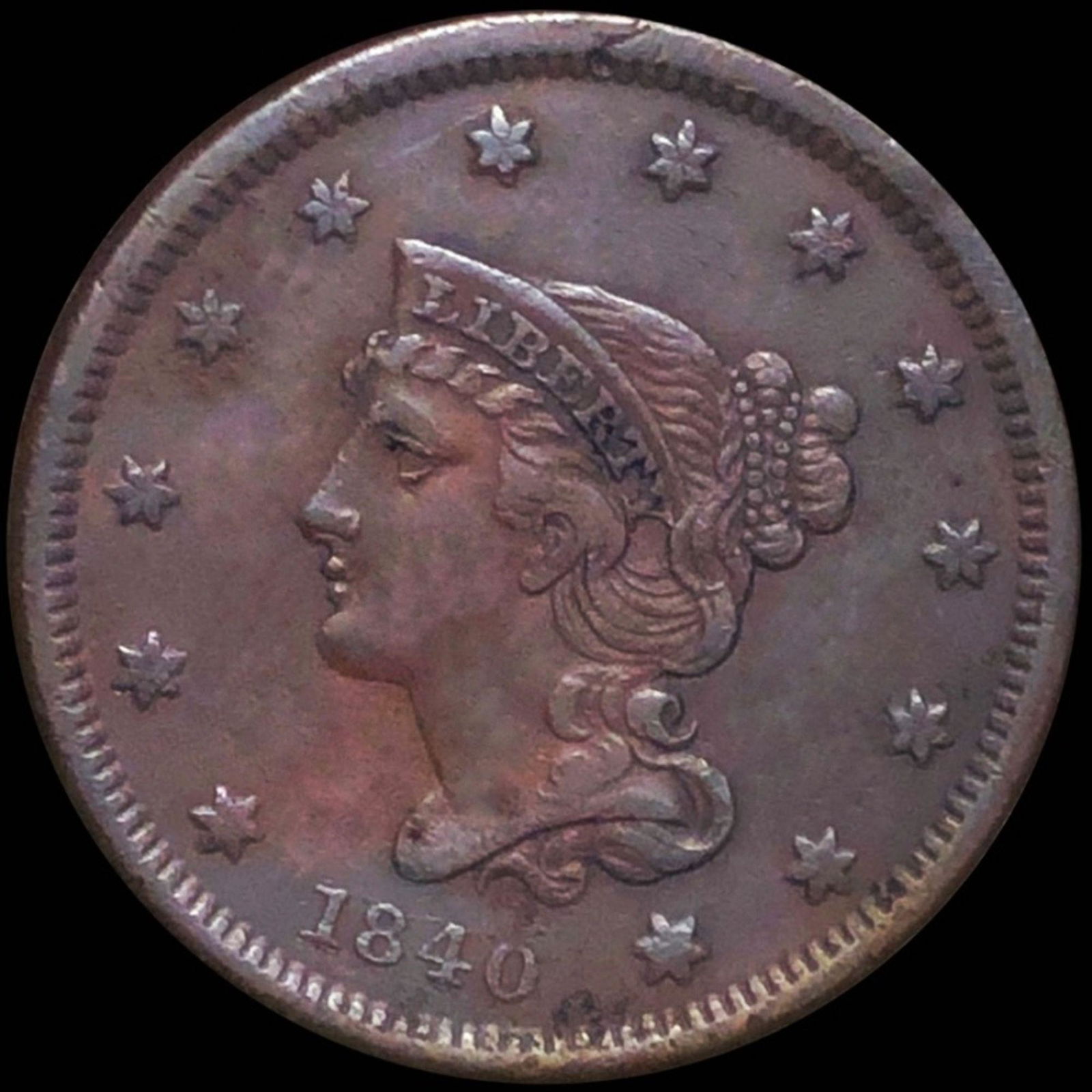 1840 Braided Hair Large Cent NEARLY UNCIRCULATED