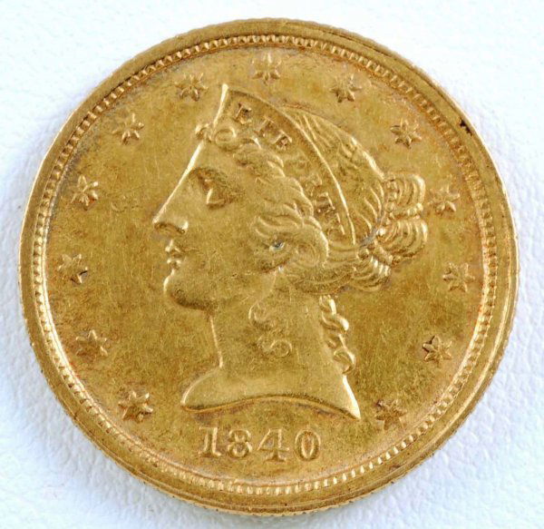 1840-C Liberty Head $5 Gold Half Eagle VF
