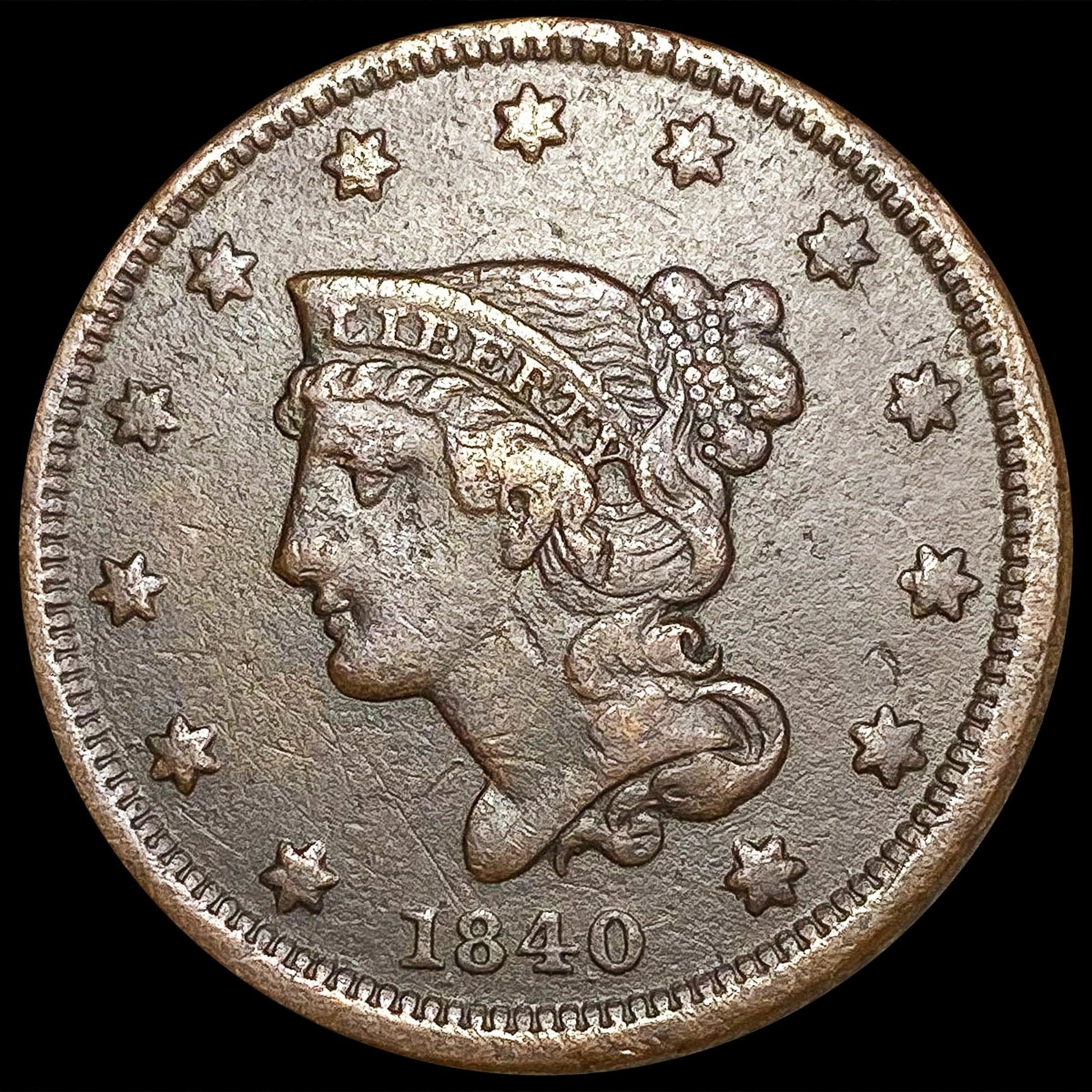1840 Braided Hair Large Cent LIGHTLY CIRCULATED