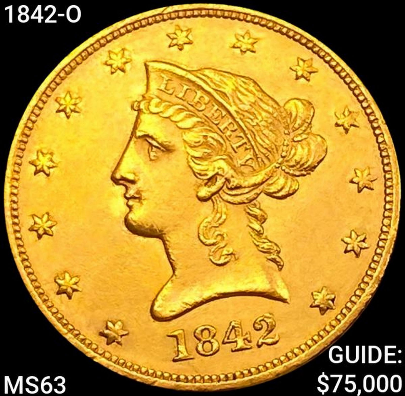 1842-O $10 Gold Eagle CHOICE BU