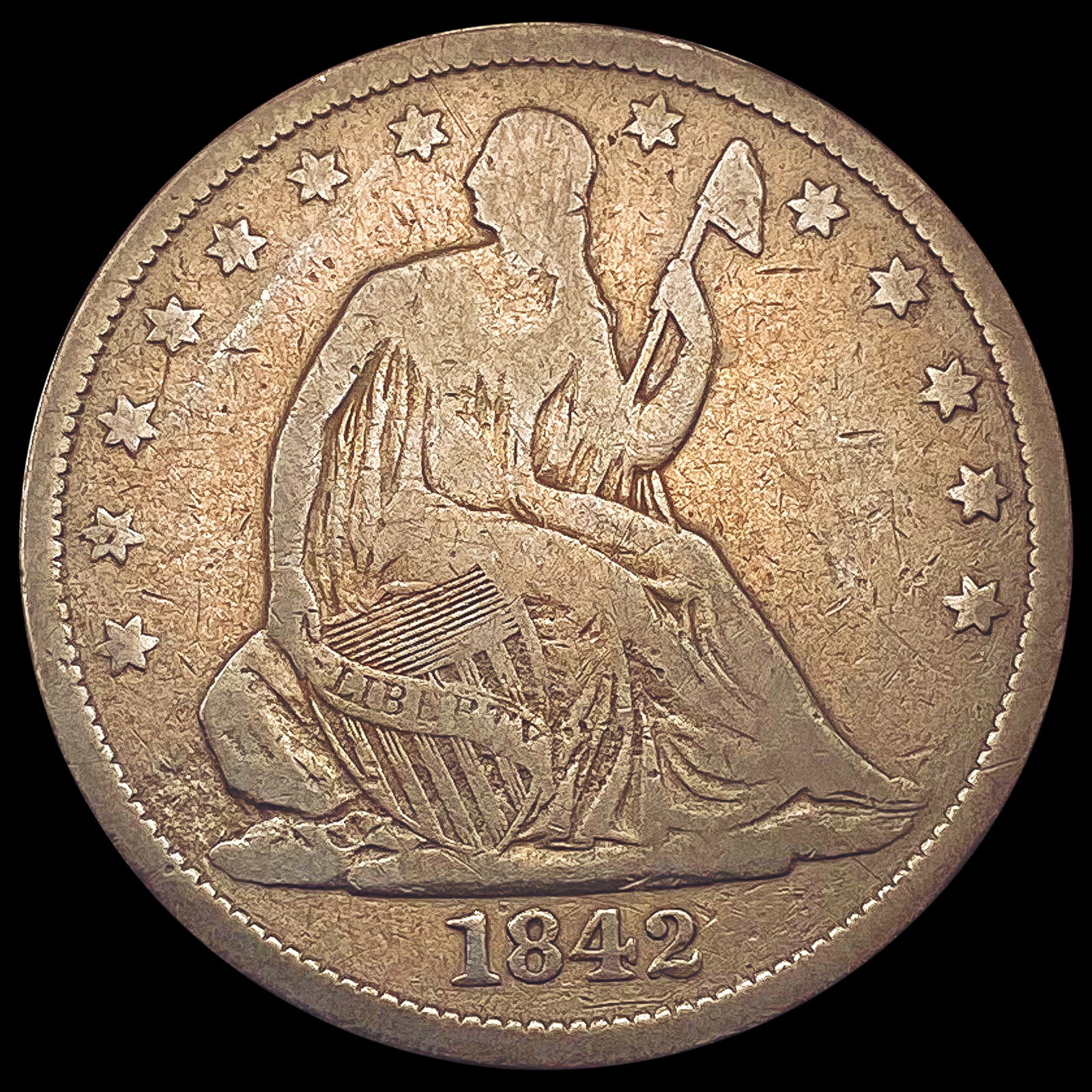 1842 Seated Liberty Half Dollar LIGHTLY CIRCULATED