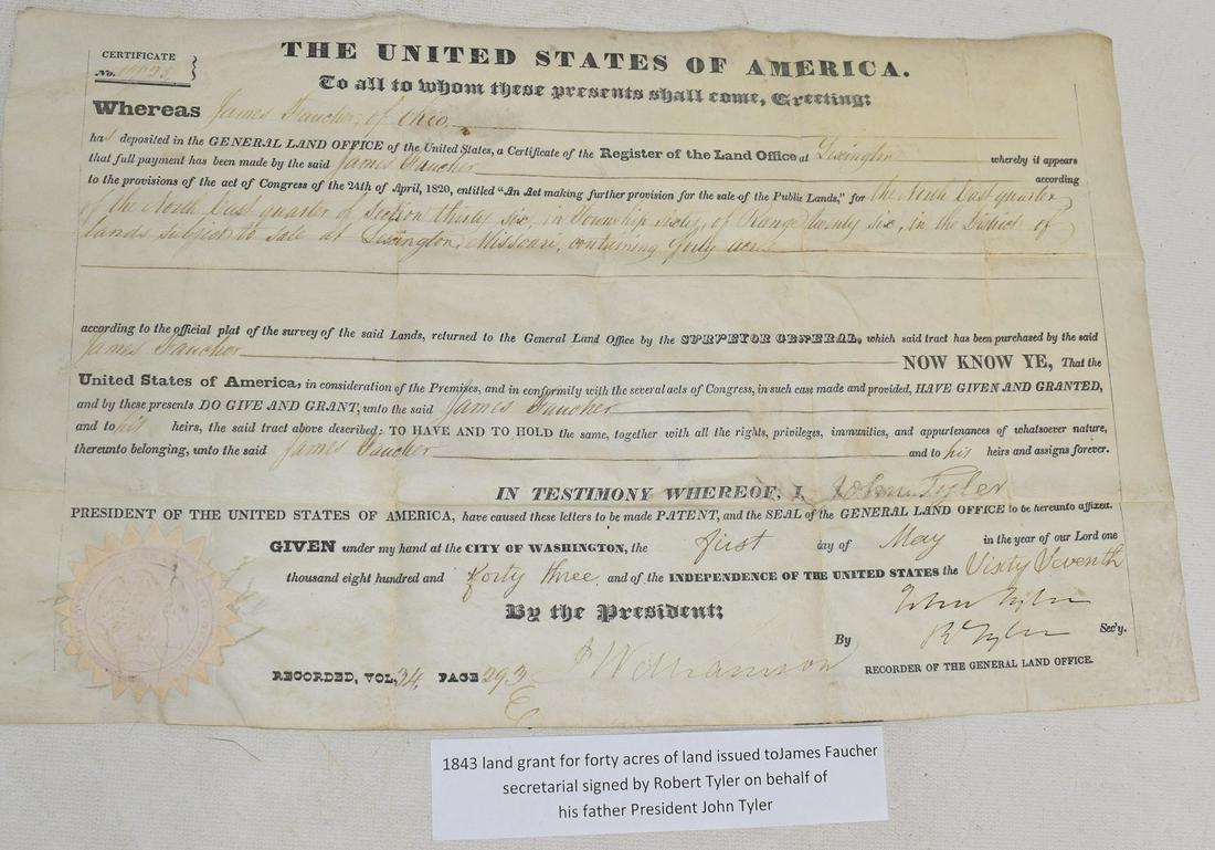 1826 Salem, NY Land Indenture Signed Elijah KennedyMar 15, 20261796 English Manuscript Satisfaction1767 Colonial Pennsylvania Land Deed – Cumberland CountyMar 15, 2026John Quincy Adams Signed Land Grant2 days LeftJames Monroe Signed Mississippi Land Grant2 days LeftPresident James Buchanan Signed Land Grant5 days Left1842 President John Tyler Signed U.S. Land PatentMar 15, 2026Franklin Pierce Signed Appointment2 days LeftMartin Van Buren Signed United States Land Grant, Columbus, Mississippi, 1841Mar 07, 20261841 President John Tyler Signed U.S. Land PatentMar 15, 2026Antique 19th C. Land Grant on VellumMar 08, 20261861 Abraham Lincoln & Seward signed document7 days LeftJames Monroe Land GrantMar 08, 20261791 William Bradford, Washington’s Attorney General Signed DocumentMar 15, 20261863 Clothing lost in Battle document7 days LeftAntique 19th C. Land Grant on VellumMar 08, 2026