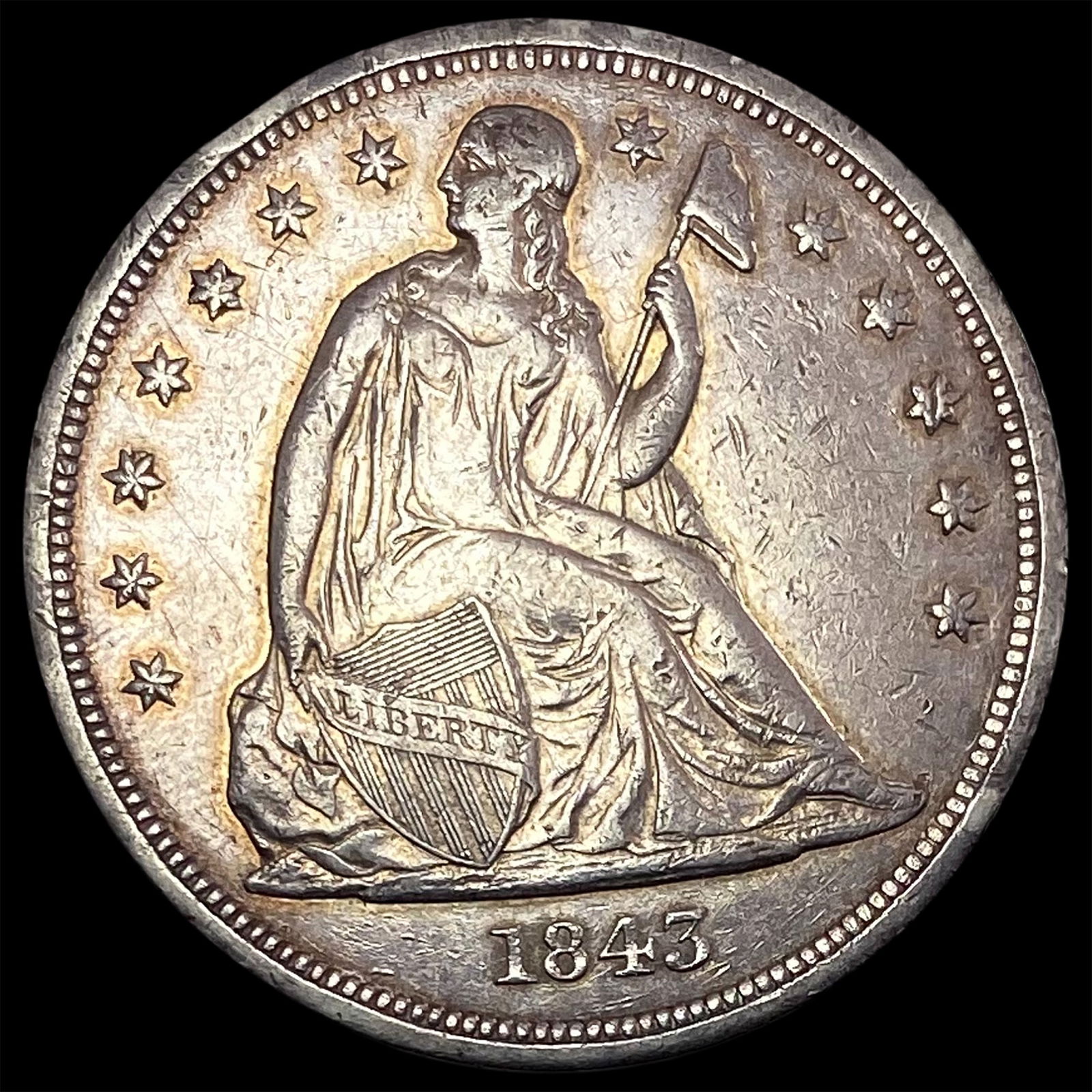 1843 Seated Liberty Dollar NEARLY UNCIRCULATED