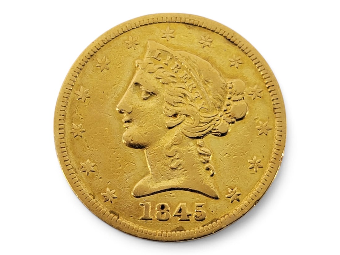1845 $5 Coronet Head Gold Half Eagle Coin