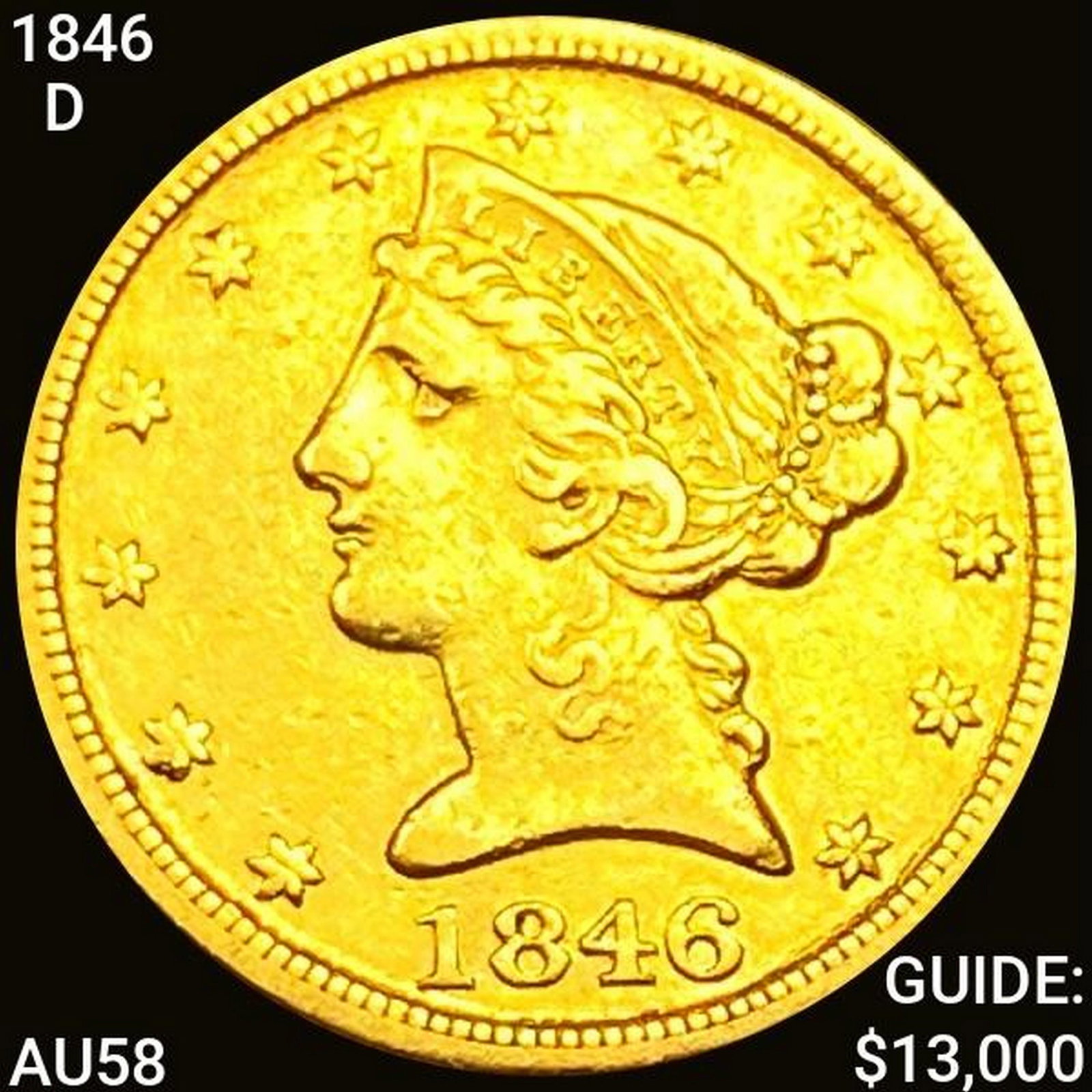 1846-D $5 Gold Half Eagle CHOICE AU