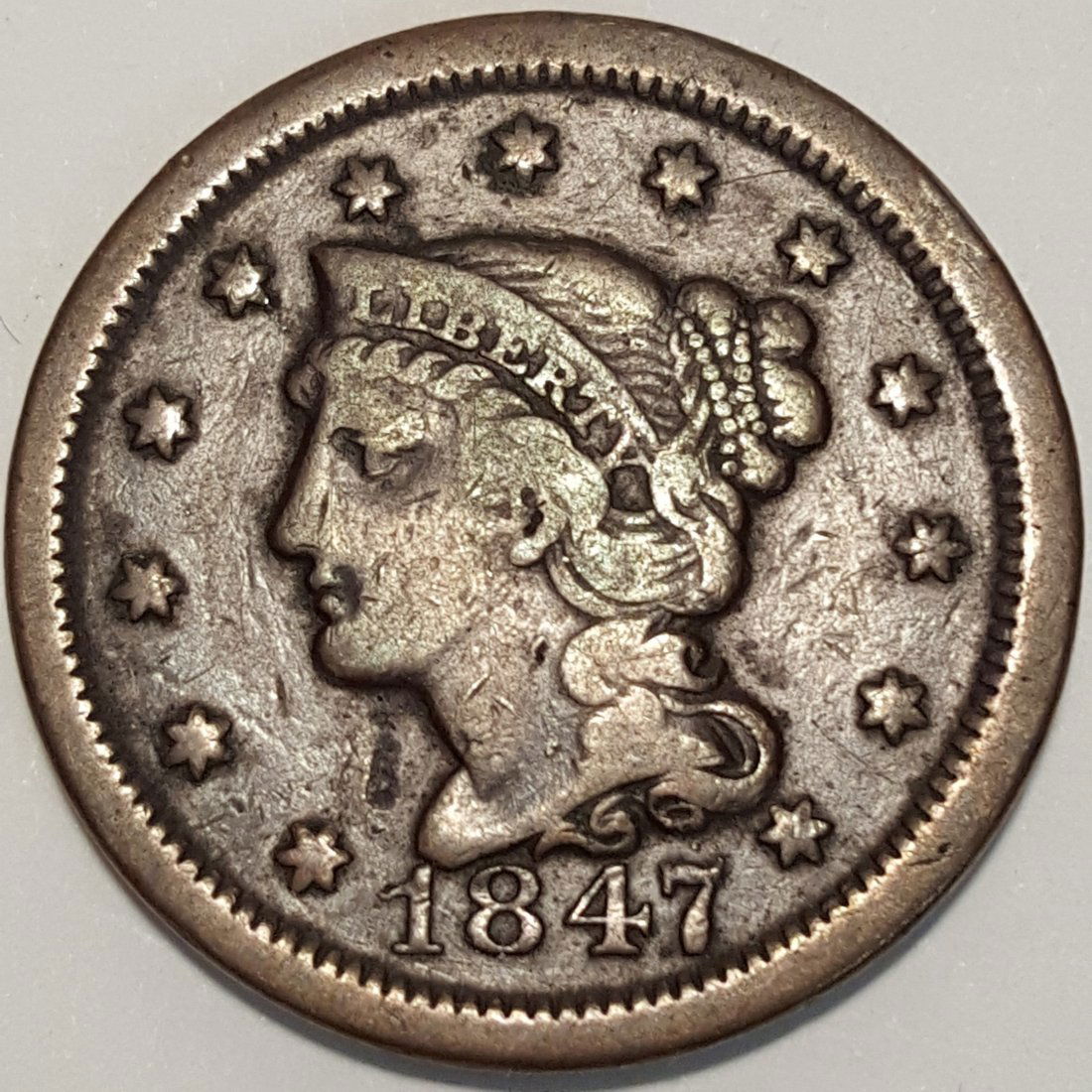 Uncertified 1847 Large Cent EF