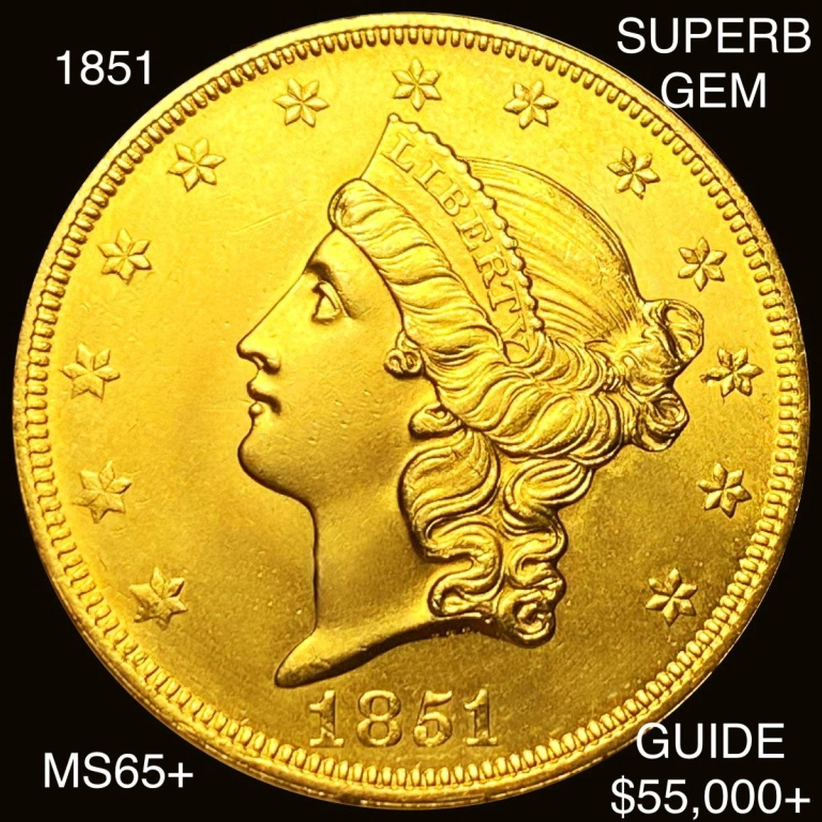 1851 $20 Gold Double Eagle SUPERB GEM BU
