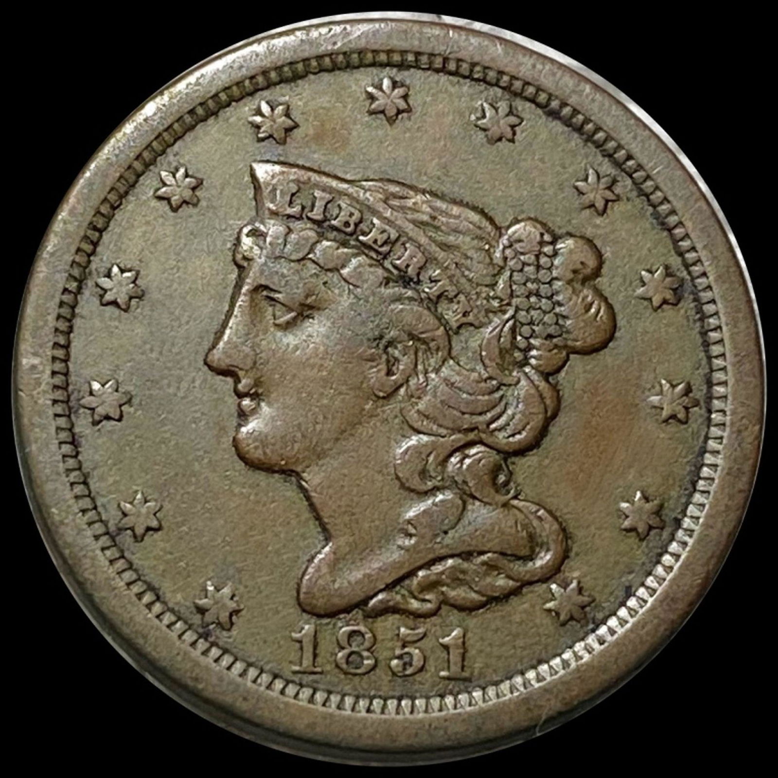 1851 Braided Hair Half Cent LIGHTLY CIRCULATED