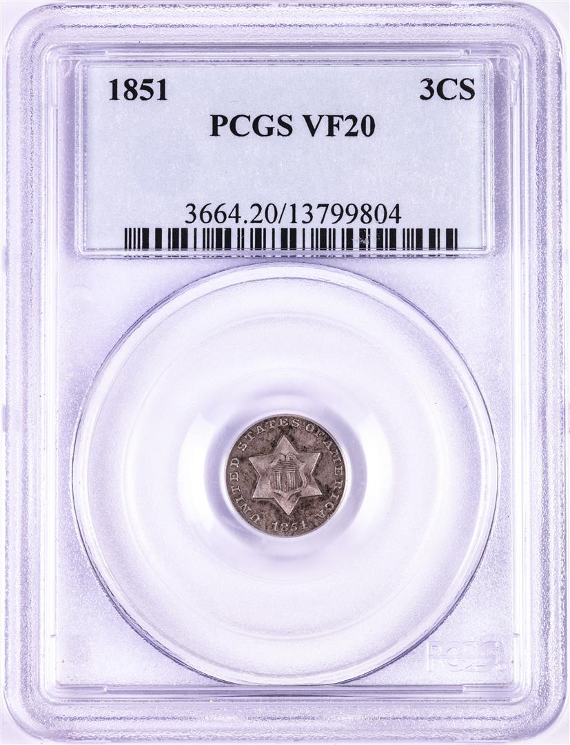 1851 Three Cent Silver Coin PCGS VF20