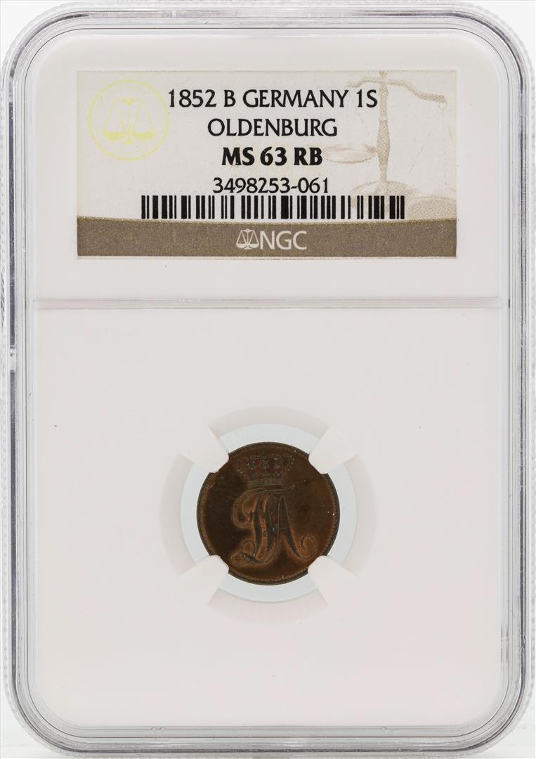 1852B Germany Schwaren Coin BGC MS63 RB