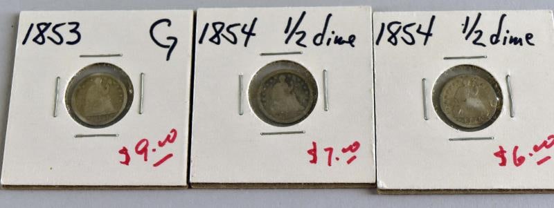 Lot Of Four 1863 Mixed Civil War Tokens6 days LeftLot Of Five United States Mixed Date Large Cents6 days LeftEARLY SILVER COIN LOT1 day Left1903, 1911, 1914 Barber Dimes and a Quarter1 day LeftLot of 2 Liberty V Nickels- 1887, 1898Lot of 2 Liberty V Nickels- 1892, 1894Lot of 2 Liberty V Nickels - 1887, 1888Lot of 3 Silver Barber Dimes-1898, 1903-O, 1905-OUS 1873-1962 Silver Coin Collection, Half Dime, Quarters, Dimes3pc US Barber Quarters, 1894, 1895, and 19134 hrs Left3pc US 1883, 1884, and 1887 5 Cent Liberty Head Nickel4 hrs LeftTwo Circulated Bust Silver DimesThree 3-cent Nickels in Very Good to Fine plus1853 Arrows/Rays & 1872 United States Liberty Seated Silver Half Dollars6 days Left1840-O & 1841-O United States Seated Liberty Quarters6 days Left1838 and 1840 Large Cents
