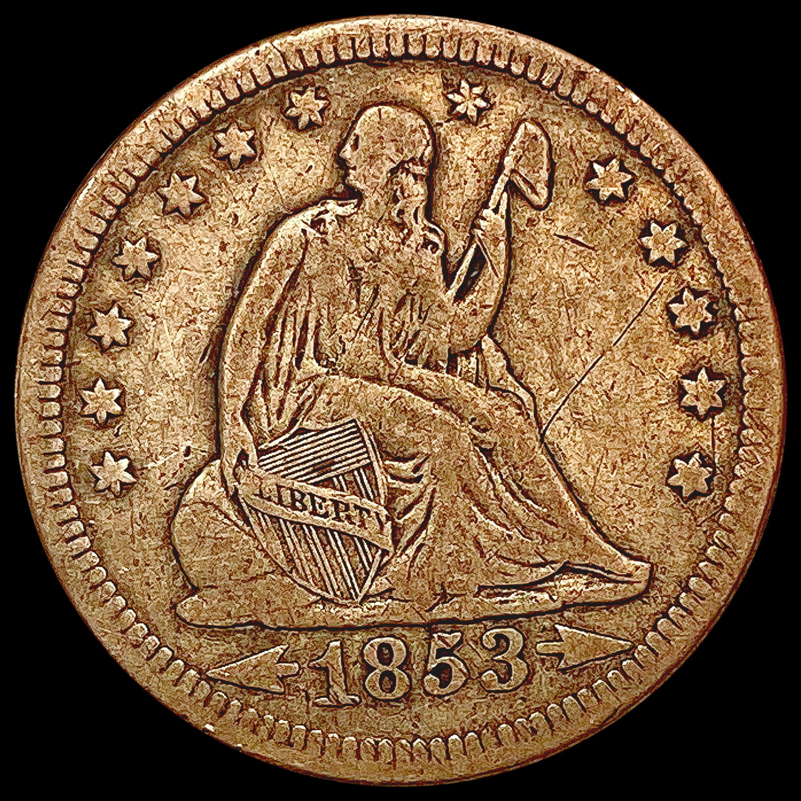 1853 Arrows Rays Seated Liberty Quarter NICELY CIRCULATED