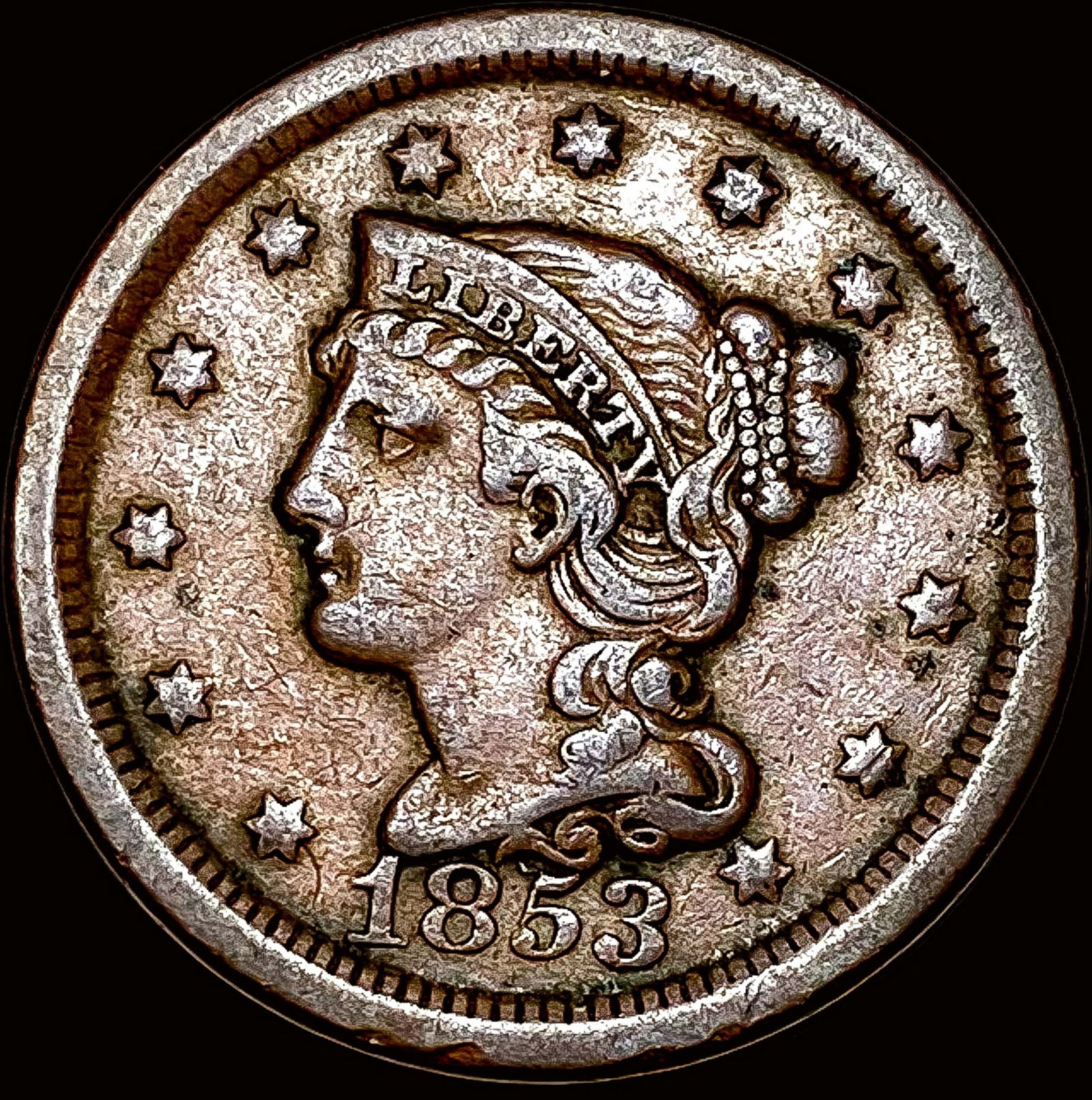 1853 Braided Hair Large Cent ABOUT UNCIRCULATED