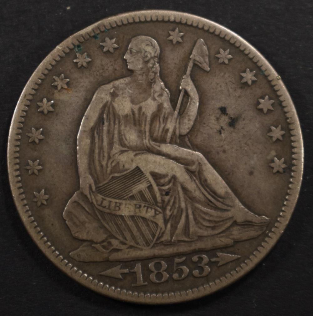 1853 SEATED LIBERTY HALF DOLLAR VF