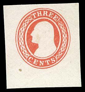 1853 USA #U1 WASHINGTON 3¢ RED, CUT SQUARE