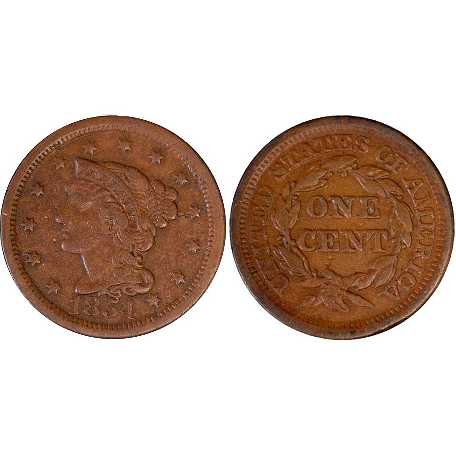 1857 Braided Hair Large Cent Small Date Copper Coin EF UncertifiedMynt Auctions4.4(832)$4904 days Left