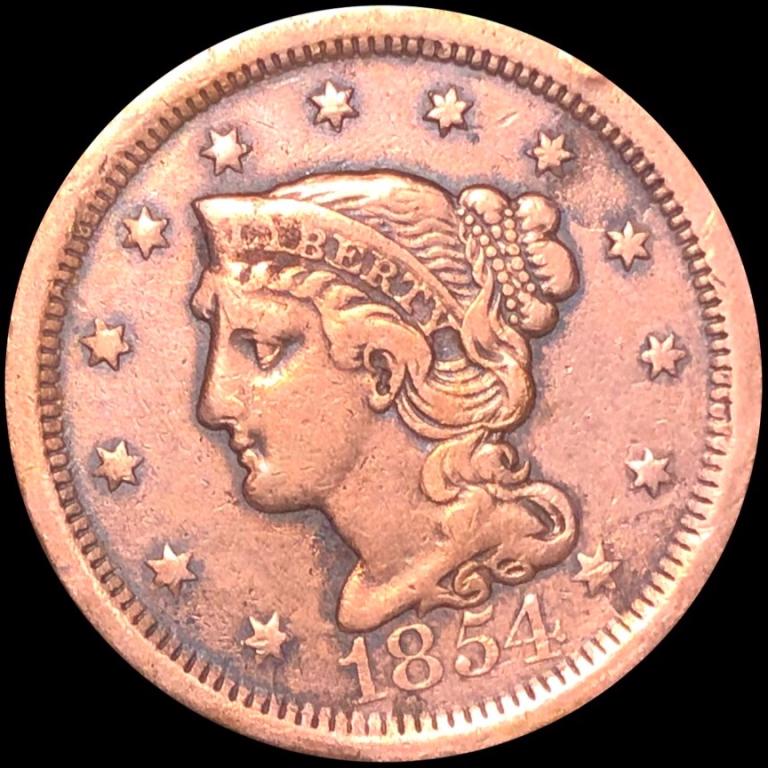 1854 Braided Hair Large Cent LIGHTLY CIRCULATED