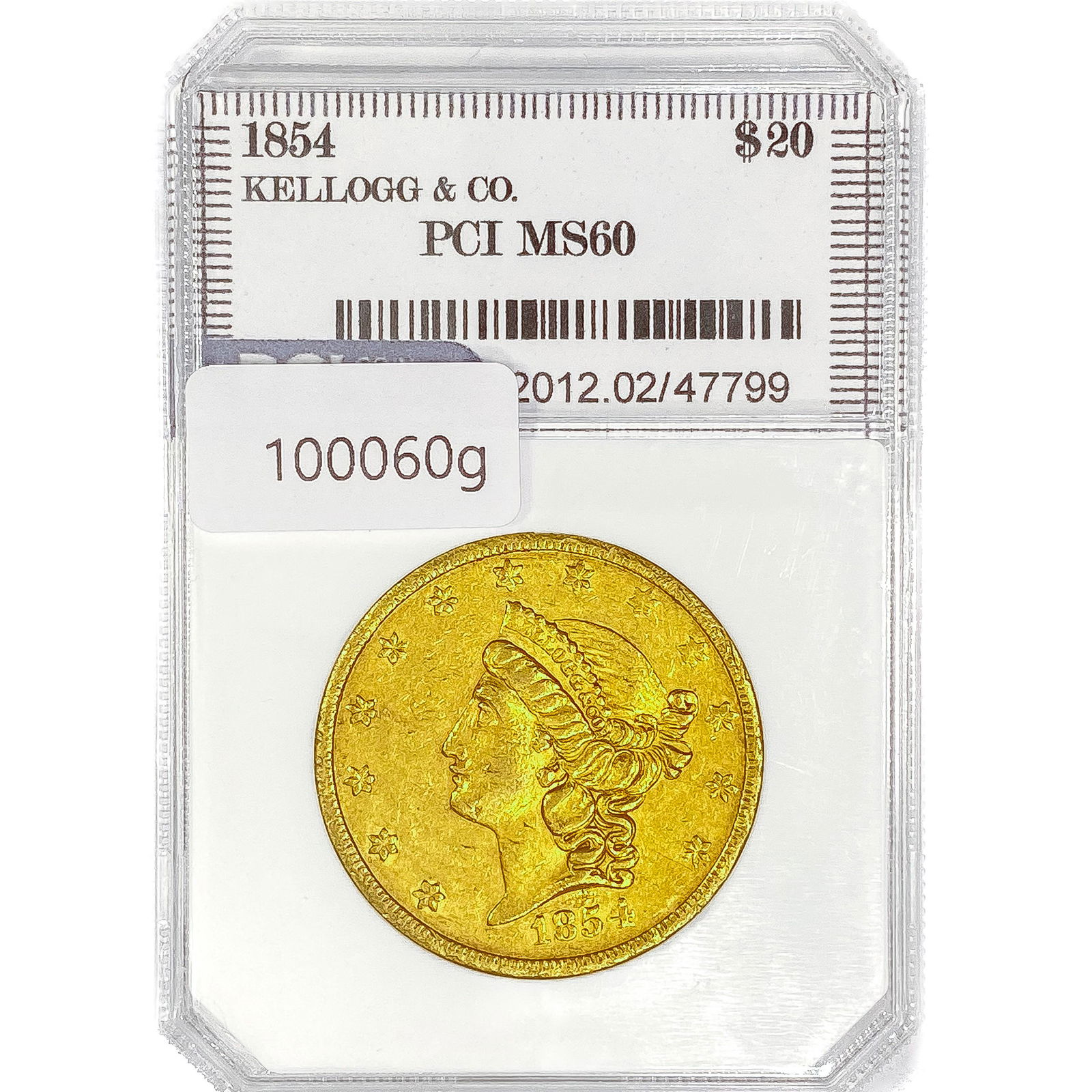 1854 Kellogg $20 Gold Double Eagle PCI MS60