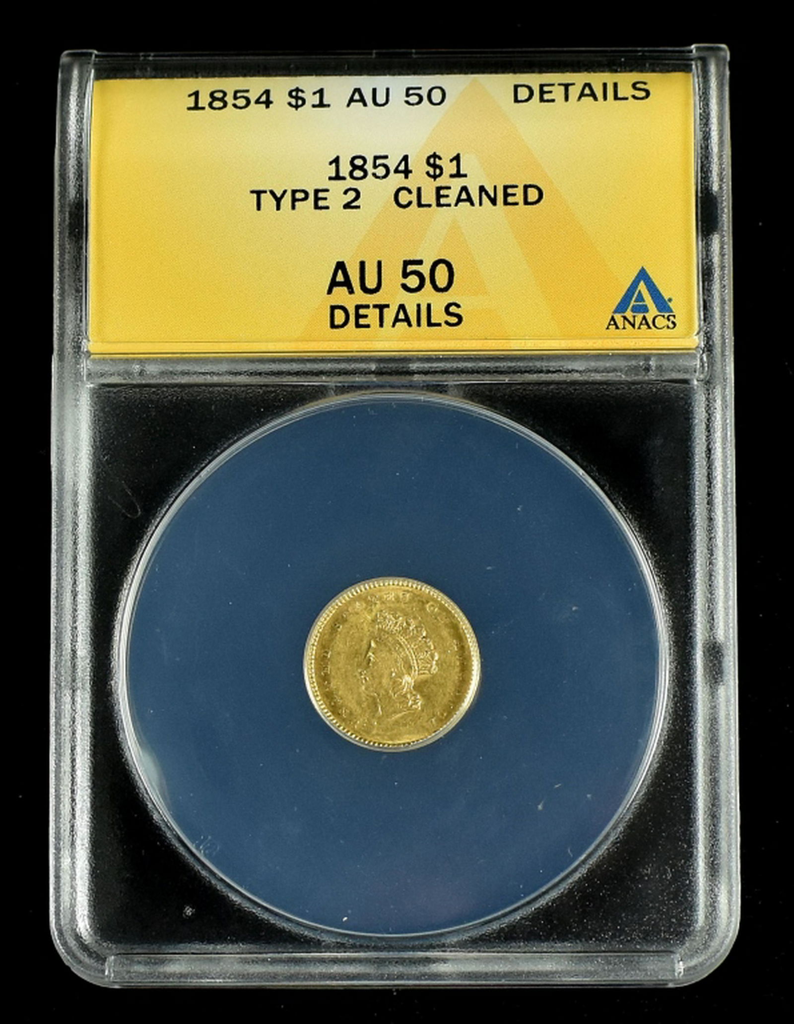 Sold1854 $1 Liberty Gold TYPE 2 NGC AU details O/S1854 $1 Liberty Gold TYPE 2 NGC AU details due to an obverse scratch.See Sold Price