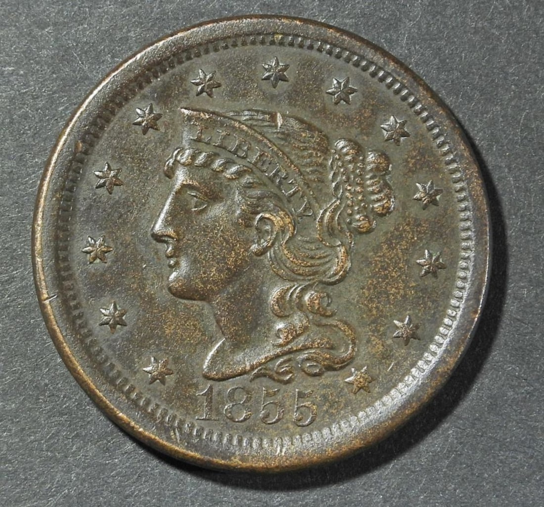 1855 Braided Hair Large cent in Very Fine