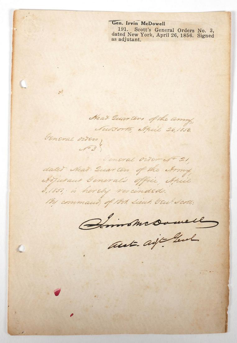 Alvin Nichols 36th Mass Volunteers LettersMar 02, 20261861 Appointment Letter 2nd Lt. in 5th Reg. ArtilleryMar 02, 2026Zachary Taylor Handwritten and Signed Military RequisitionFeb 25, 20262 General Montgomery C. Meigs Signed LettersMar 07, 2026Major General Wesley Merritt ALS other signaturesMar 02, 2026Abraham Lincoln Autograph Letter Signed. One pagFeb 26, 2026Massachusetts 34th Regiment Discharge & moreMar 02, 2026Secretaries of Treasury & interior, Senators signedMar 02, 20261863 Brig Gen Albert Torbert letter to Collett widowMar 02, 2026Secretary of the Navy and officers signed docs.Mar 02, 2026Poinsett, Other Noted Charlestonians Signed LetterMar 07, 2026Officers' signatures, printed speeches, etc.,Mar 02, 2026Julius H. Stahel & Franz Sigel – Civil War Generals – Dual-Signed Letter – PromotiWilliam F. Morgan Massachusetts 2nd Infantry LetterMar 02, 2026Soldiers Pay and clothing Civil War soldiers accountMar 02, 2026CSA Doc. Assistant Quartermaster appointmentMar 02, 2026