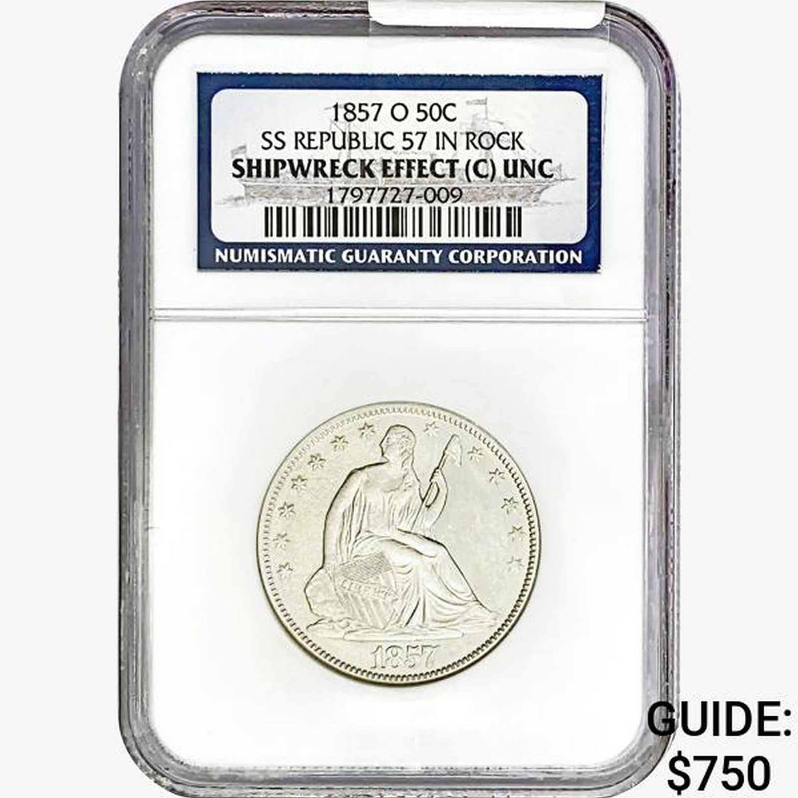 1857-O Seated Lib. 50C NGC Shipwreck Effect (C)UNC