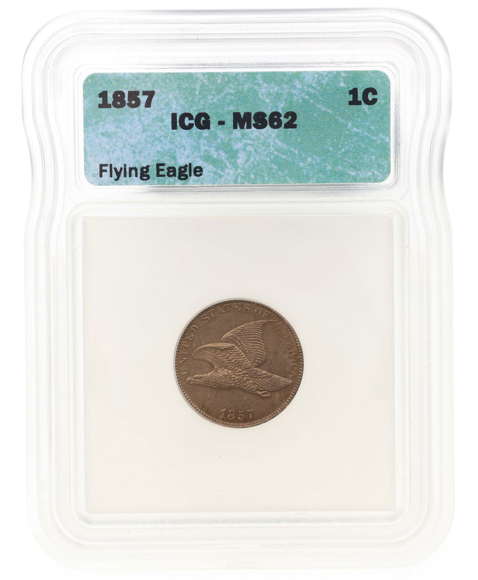 1857 US FLYING EAGLE 1C COIN ICG MS62