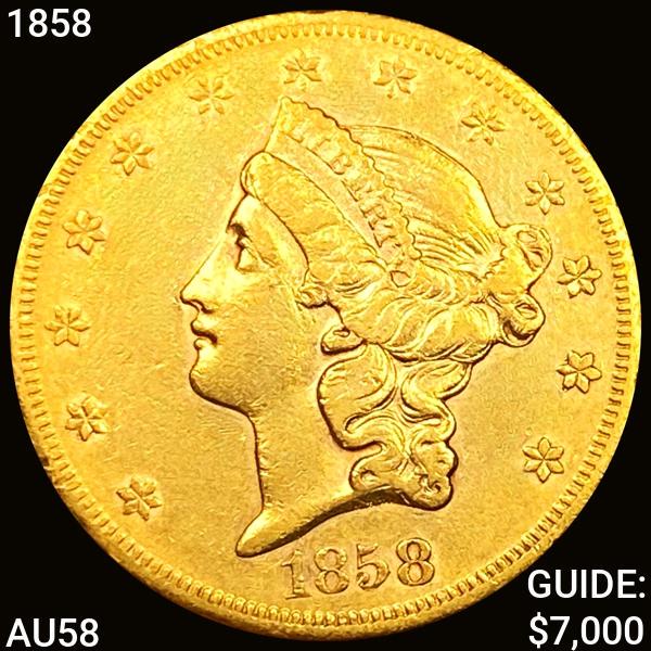 1858 $20 Gold Double Eagle CHOICE AU