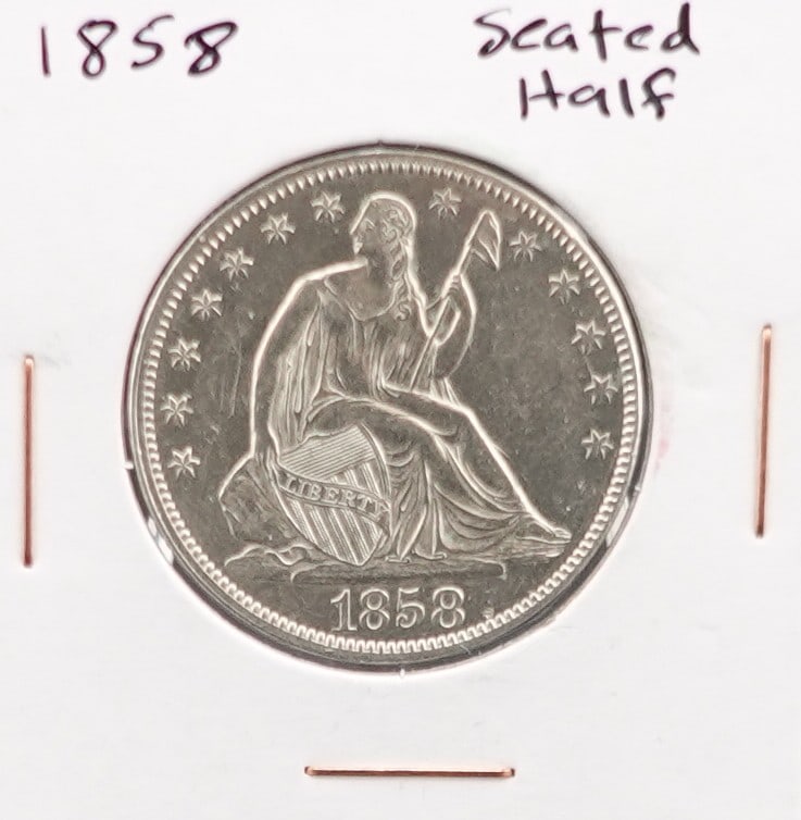 Sold1858 Seated Liberty Half Dollar CLOSELY UNCIRCULATED1858 Seated Liberty Half Dollar CLOSELY UNCIRCULATEDSee Sold Price