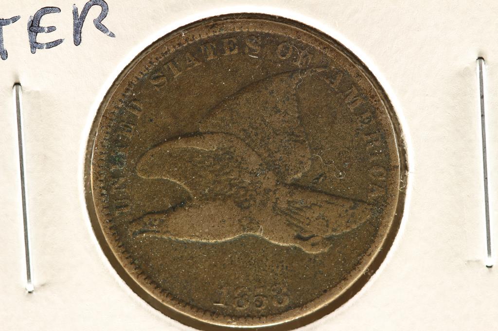 Sold1858 SMALL LETTER FLYING EAGLE CENT (FINE)WATCH FOR THE NEXT AUCTION ON MONDAY OCT. 11TH, 2021.See Sold Price