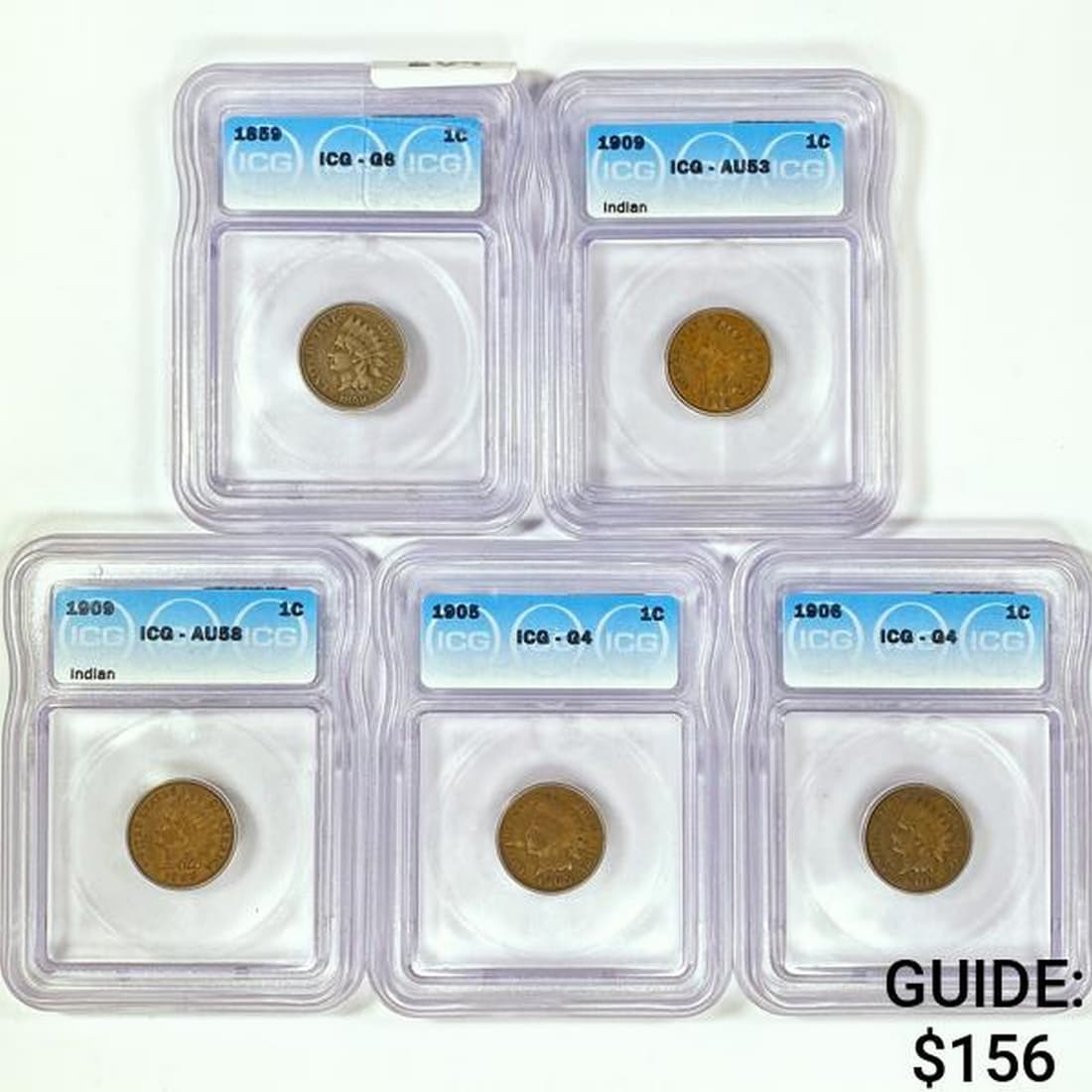 1859-1909 Set (5) Indian Head Cent ICG