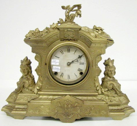 Antique Gilt Brass Mantel Clock in Glass Case, French Style