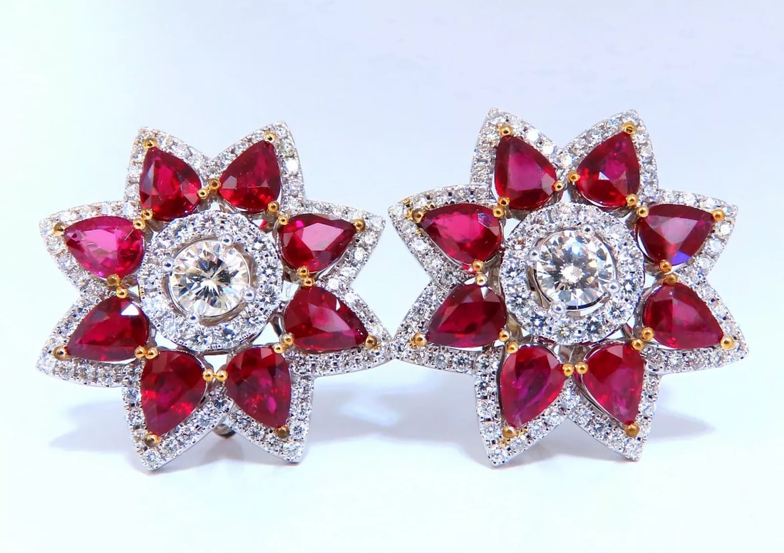 18.60ct GIA Certified Diamond Ruby Cluster Earrings 18kt