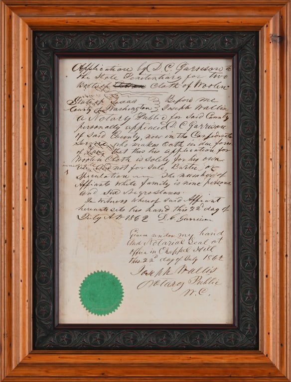 1801 New York Mayors Court Manuscript Bail1843 Oregon IL Grocery Store Promissory NoteMar 07, 20261865 Civil War Mustered-In DocumentMar 07, 2026Choctaw Nation Land Record Document, Signed by Orlando Brown, 1850Mar 07, 2026State of New Hampshire – Militia Brigade Orders – War of 1812 Era Document – 1815Carolina Worn Out Kettle Document, Discharge, etc.Mar 02, 20261856 Michael Clarken Blackstone Citizenship doc.Mar 02, 2026CIVIL WAR MASSACHUSETTS 33RD REGIMENT VOLUNTEERS APPOINTMENTMar 06, 2026Foster Meekins 5th Sgt. 34th Mass appointmentMar 02, 20261841 Georgia Land Grant, Jimmy Carter Provenance3 days Left1863 Civil War Discharge DocumentMar 07, 2026Civil War Orders, Prisoner's Oath, Coffin order, etc.Mar 02, 2026NY State Nat'l Guard- Chaplain's Travel PassMar 02, 2026DJ Whiting 1864 letter from Steamer New YorkMar 02, 2026John C Calhoun US Patent Application Document Signed as Vice President6 days Left1850 NH Appointment Cpt James Webster RiflemanMar 02, 2026