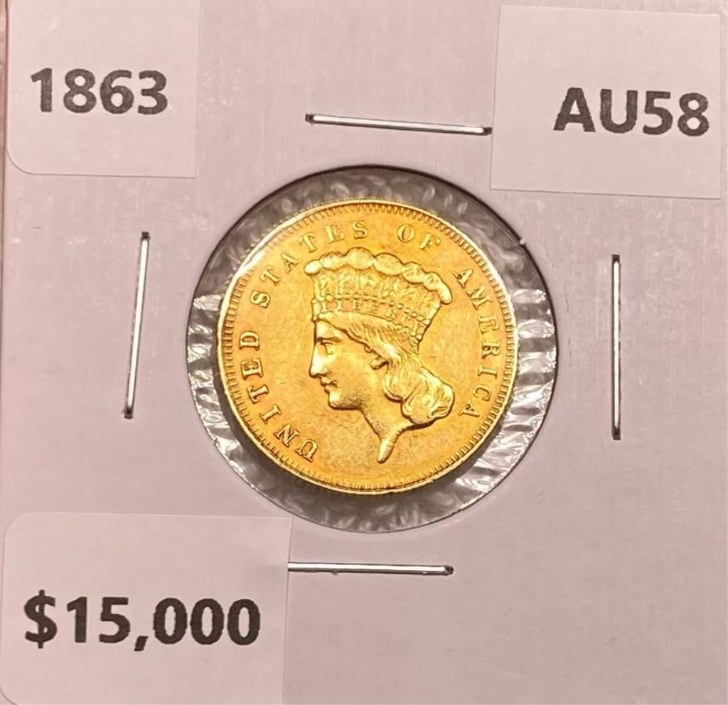 1863 $3 Gold Piece CHOICE BU