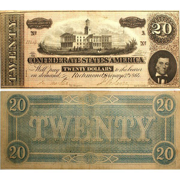 CONFEDERATE STATES CIVIL WAR $20 OBSOLETE CURRENCY / NOTES, LOT OF SEVENMar 06, 2026CONFEDERATE STATES CIVIL WAR $100 OBSOLETE CURRENCY / NOTES, LOT OF TWOMar 06, 2026CONFEDERATE STATES CIVIL WAR $10 OBSOLETE CURRENCY / NOTES, LOT OF FIVEMar 06, 20261861 Confederate States of America $20 Note. Richmond, September 2, 18613 days LeftConfederate States of America. Group of Two [2] Twenty Dollars Banknotes.Mar 11, 2026Confederate States of America. Group of Two [2] Twenty Dollars.Mar 11, 20261864 $10 Confederate States Of America CSA, T-68 Grades xf40Mar 08, 20261864 $20 Confederate States Of America CSA, T-67 Grades xf45Mar 08, 20261862 $2 Confederate States T-43 PMG F15 Certified Note4 days LeftConfederate States. 3 x 20 Dollar Banknotes [3].Mar 11, 20261861 Confederate $10 T-24 Note PMG VF25 Certified4 days LeftConfederate States of America. Group of Four [4] Two Dollars Banknotes.Mar 11, 20261863 T-62 $1 Confederate Currency PCGS MS62 Certified Note4 days LeftJuly 25th, 1861 Confederate States Of America $20 Note3 days Left1864 $5 Confederate States Of America CSA, T-69 Grades xf45Mar 08, 2026Confederate States of America, Two Dollars T70.Mar 11, 2026