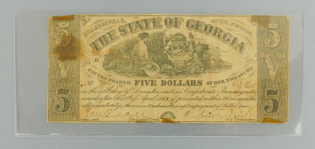 NICE 1862 State of Georgia Obsolete Currency Note $5. Milledgeville GA, Numbered and Signed. CivilTyler Greer Auctioneer4.3(4)$15(3 bids)Feb 05, 2026