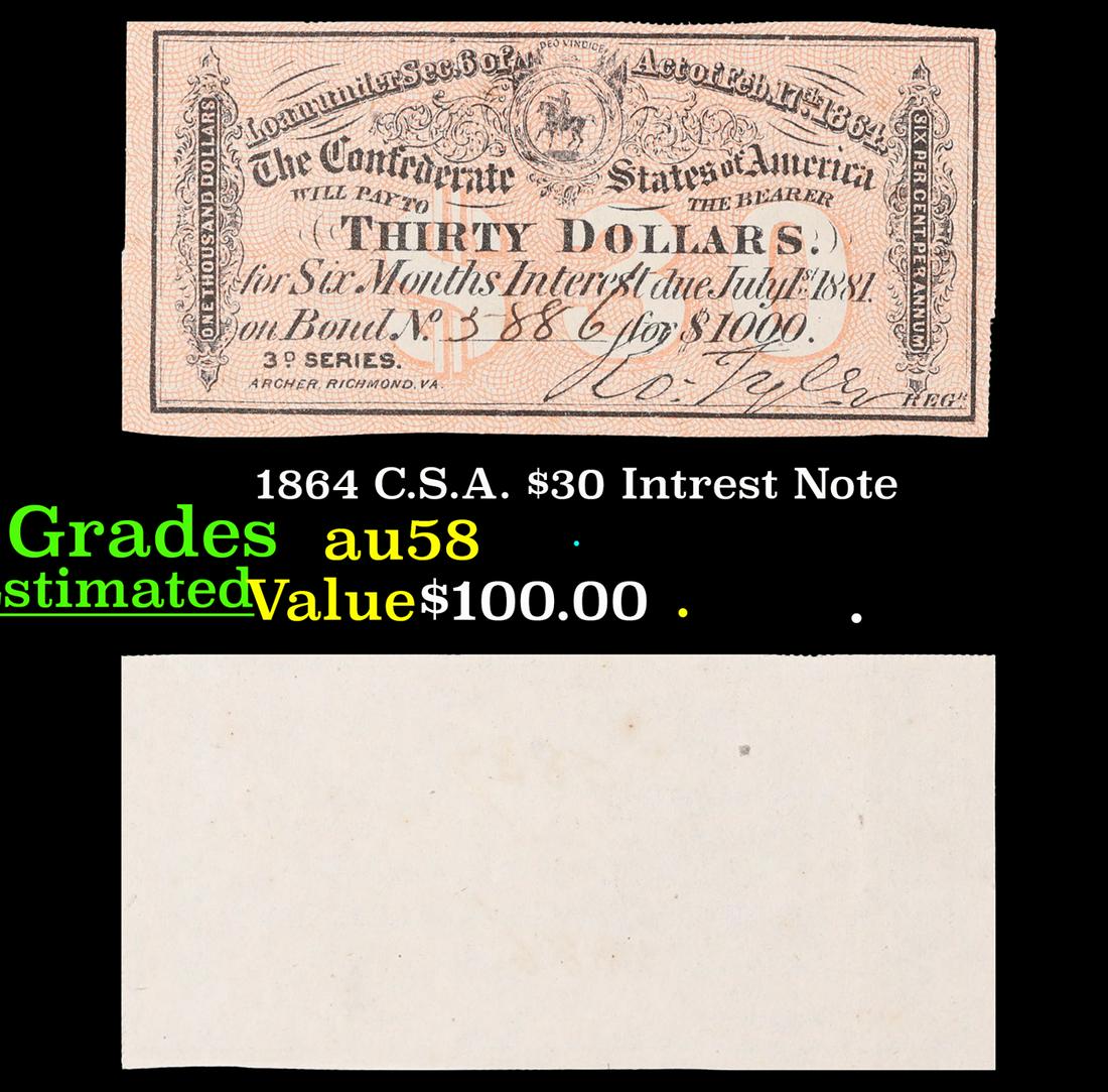 1864 C.S.A. $30 Intrest Note Grades Choice AU/BU Slider