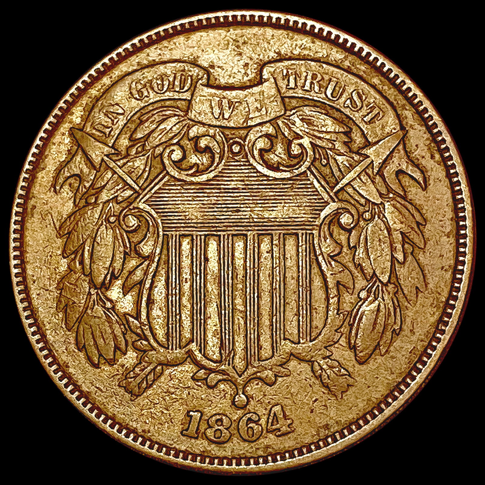 1864 Two-Cent Piece NEARLY UNCIRCULATED