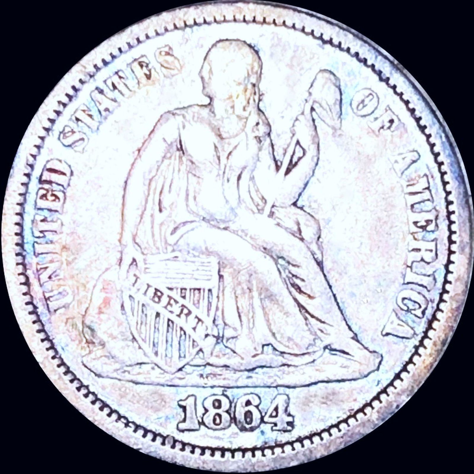 1864 Seated Liberty Dime LIGHTLY CIRCULATED