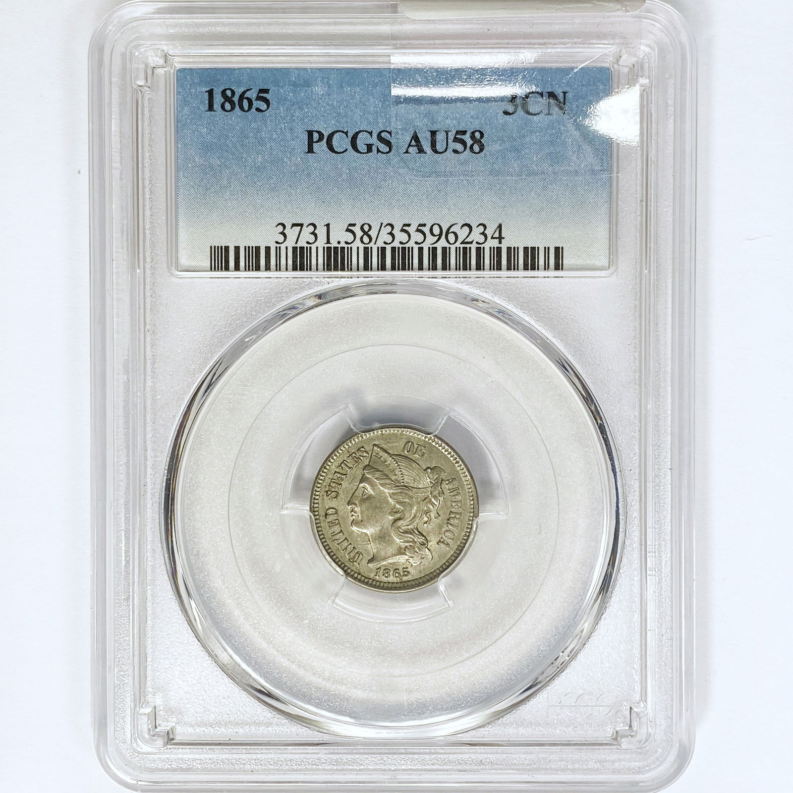 1865 Nickel Three Cent PCGS AU58