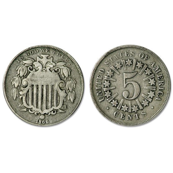 1866 Shield Nickel With Rays - Full Rim - VF