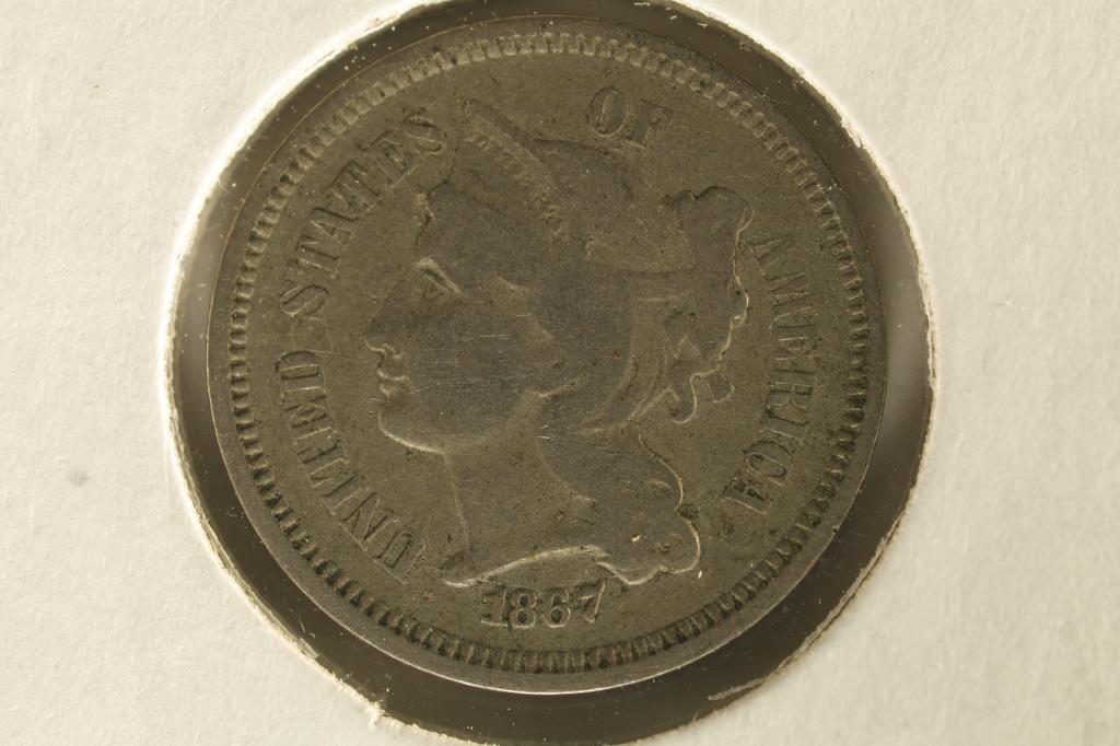 Sold1867 THREE CENT PIECE (NICKEL)You must call or email us with your credit card number directlySee Sold Price