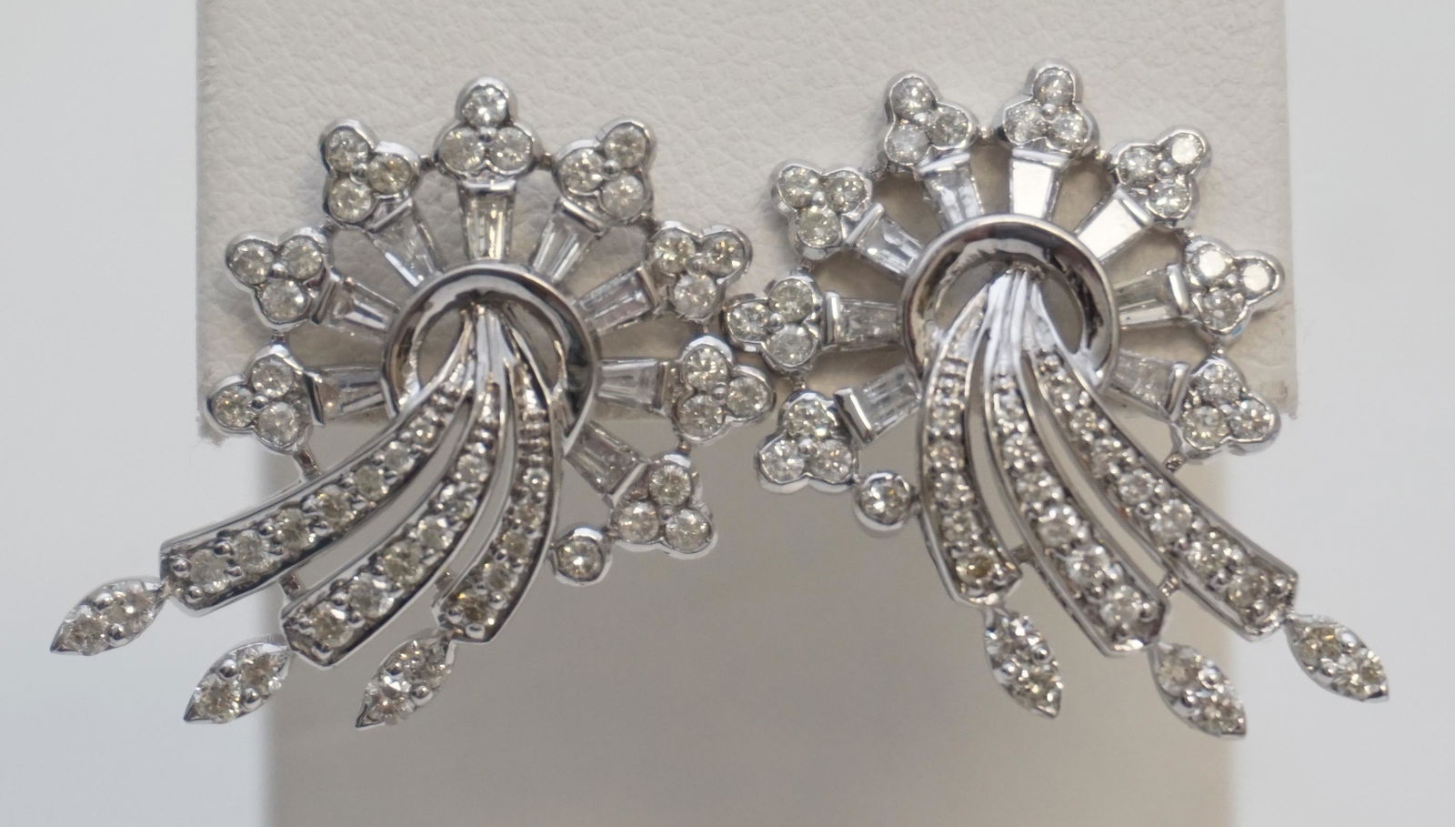 Art Deco Platinum Earrings with 104 Diamonds 2.50 Ct F-H VVS1-VS