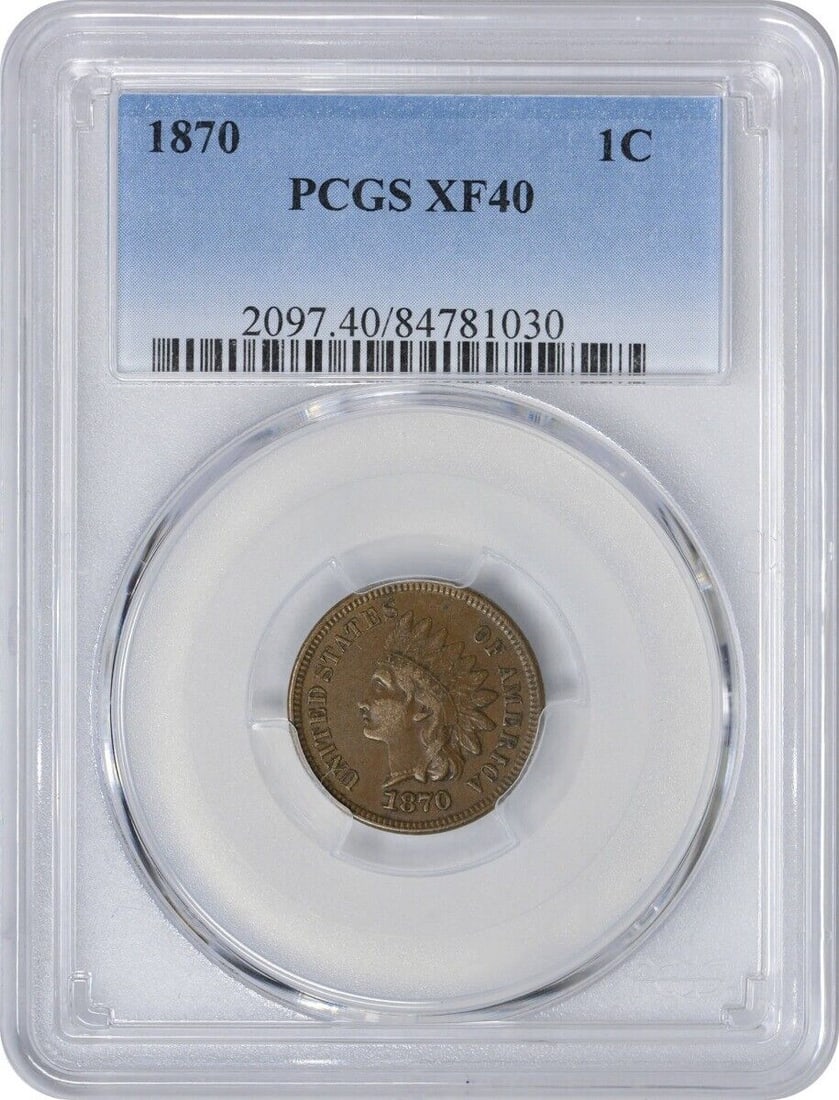 1870 Indian Cent Ef40 Pcgs