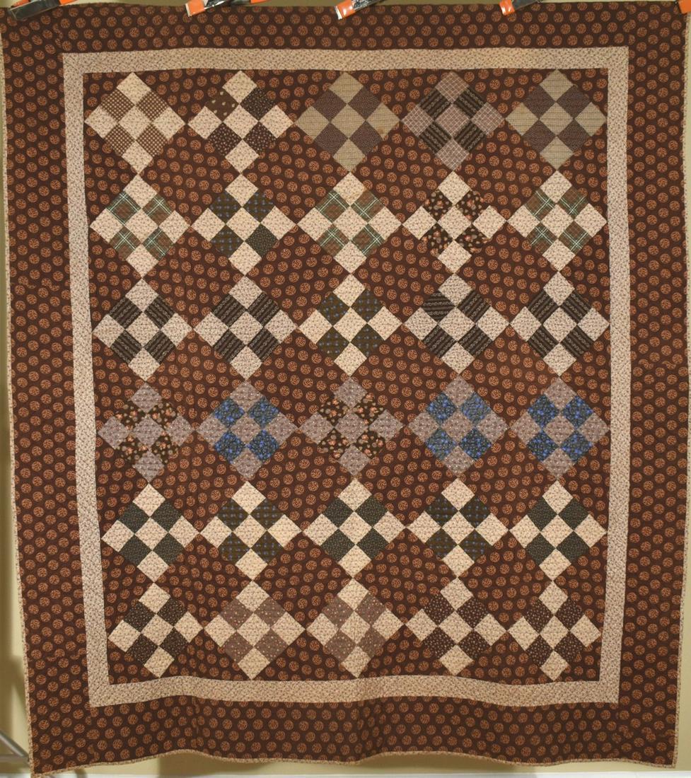 1870's 9-Patch Quilt, Early Brown Fabrics