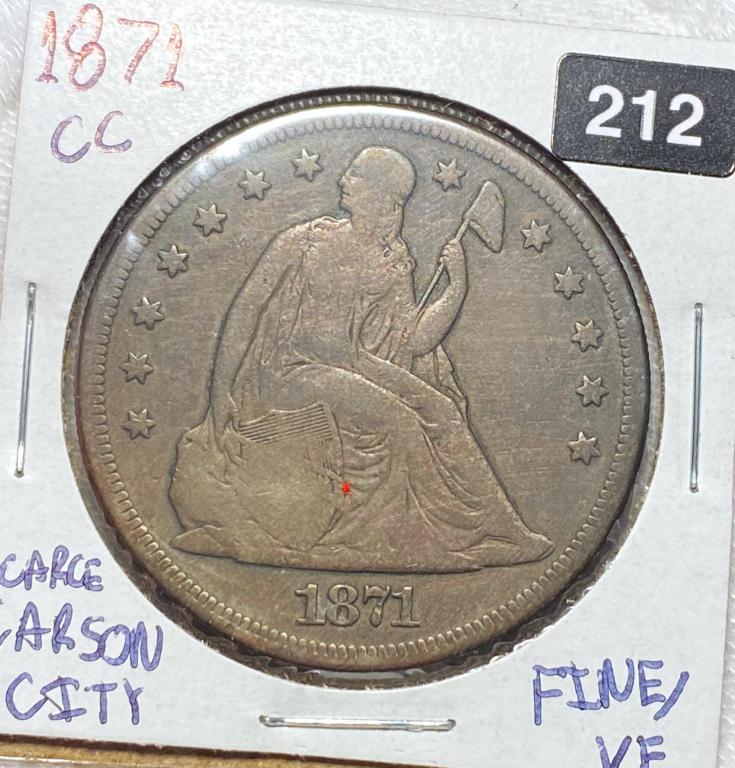1871-CC Seated Liberty Dollar NICELY CIRCULATED