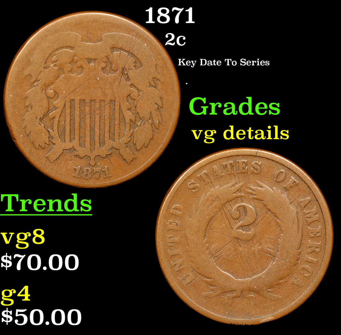 1871 Two Cent Piece 2c Grades vg details