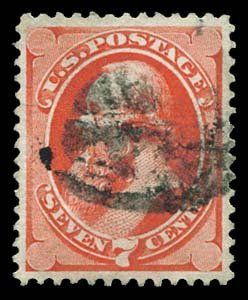1871 USA #138 GRILLED BANKNOTE 7¢, SPLIT GRILL