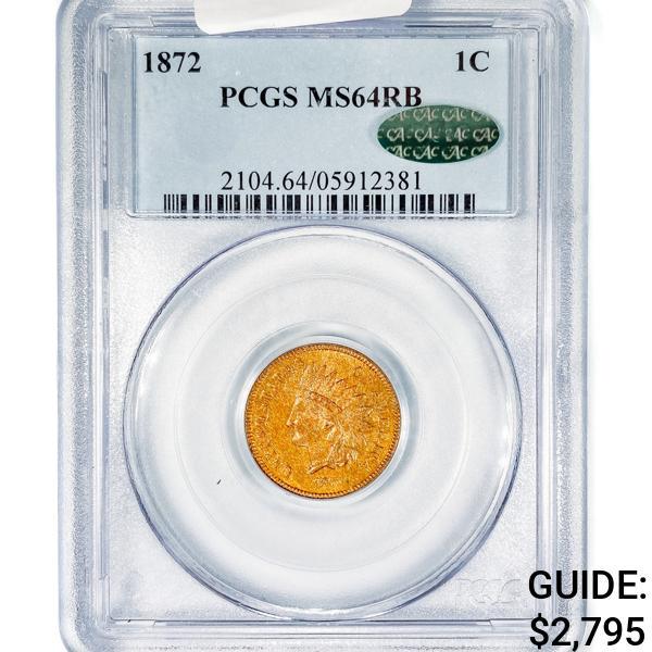 1872 CAC Indian Head Cent PCGS MS64 RB